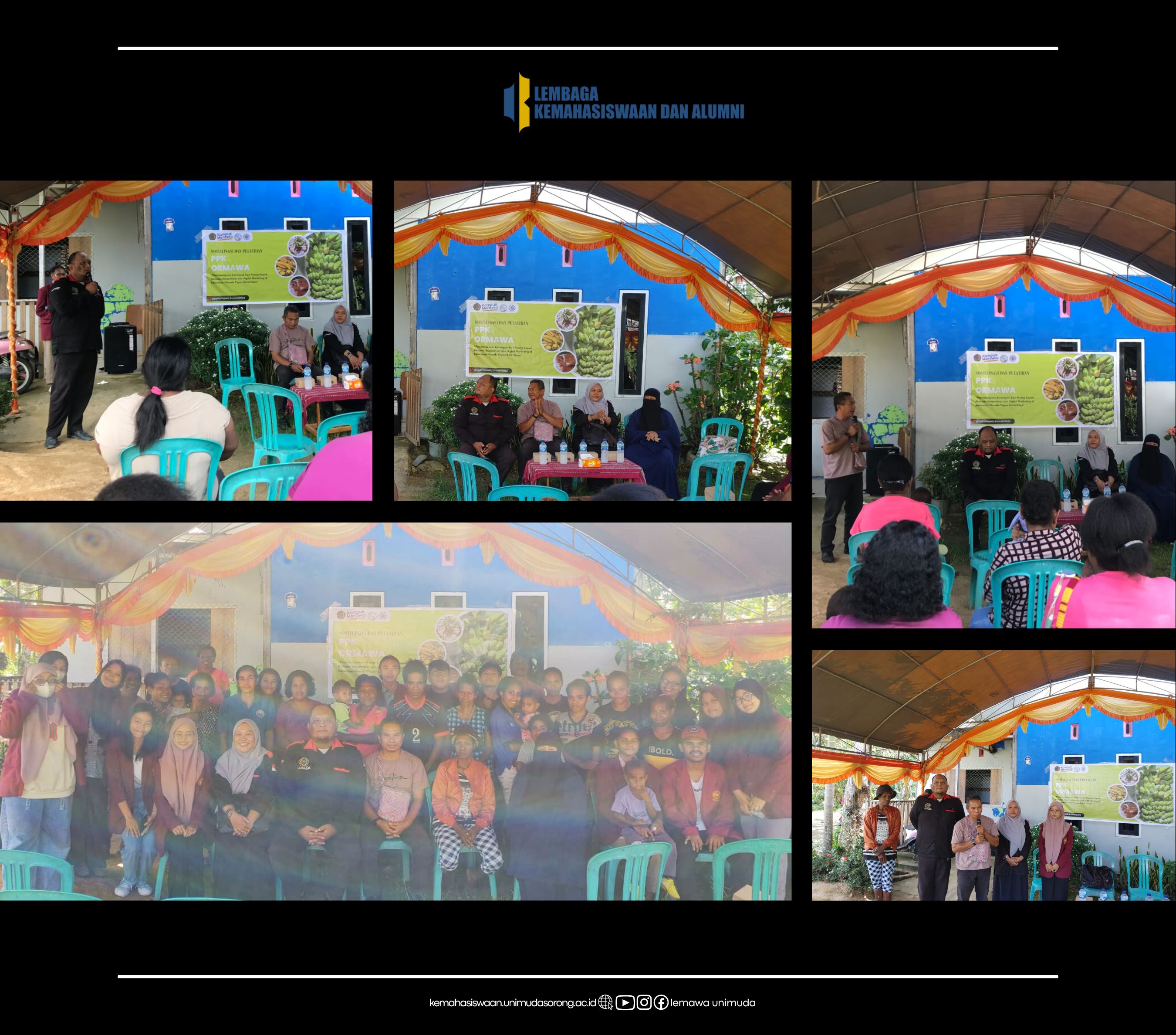 Berhasil lolos seleksi Program Peningkatan Kapasitas (PPK) Organisasi Mahasiswa (Ormawa) Tahun 2023, Korps Mahasiswa Program Studi Hubungan Internasonal (Komahi) Universitas Pendidikan Muhammadiyah Sorong (Unimuda Sorong) kolaborasi dengan Humanist (Himpunan Mahasiswa Program Studi Bisnis Digital) Unimuda Sorong melakukan sosialisasi sekaligus pembukaan rangkaian kegiatan PPK Ormawa di Kelurahan Klamalu, Kabupaten Sorong, Provinsi Papua Barat daya. Tim ini mengusung tema desa wirausaha melalui pemberdayaan Kelompok Tani Pisang Kepok dengan konsep Sociopreneur dan digital marketing.